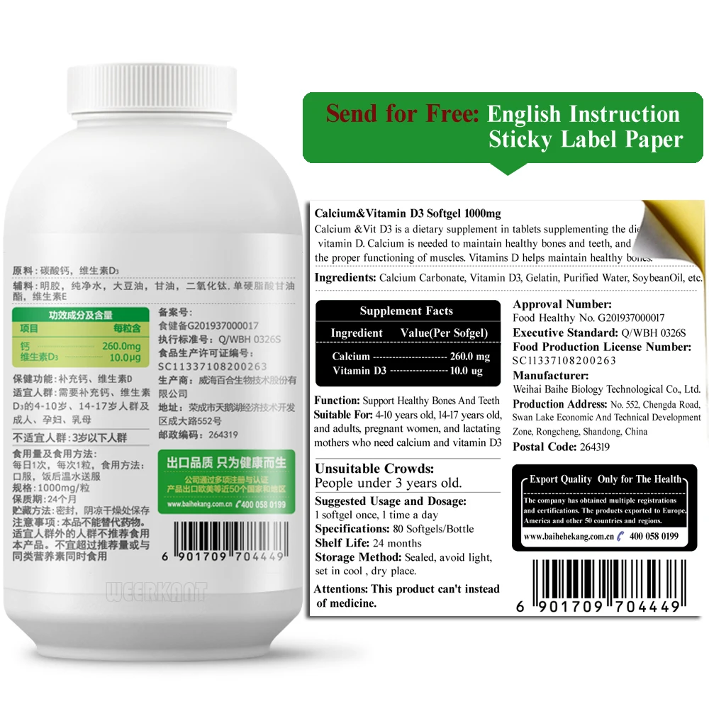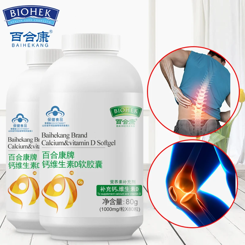 HIGH QUALITY 2 Bottles Bone Joint Pain Liquid Calcium Vitamin D3 Softgel Capsule Health Product