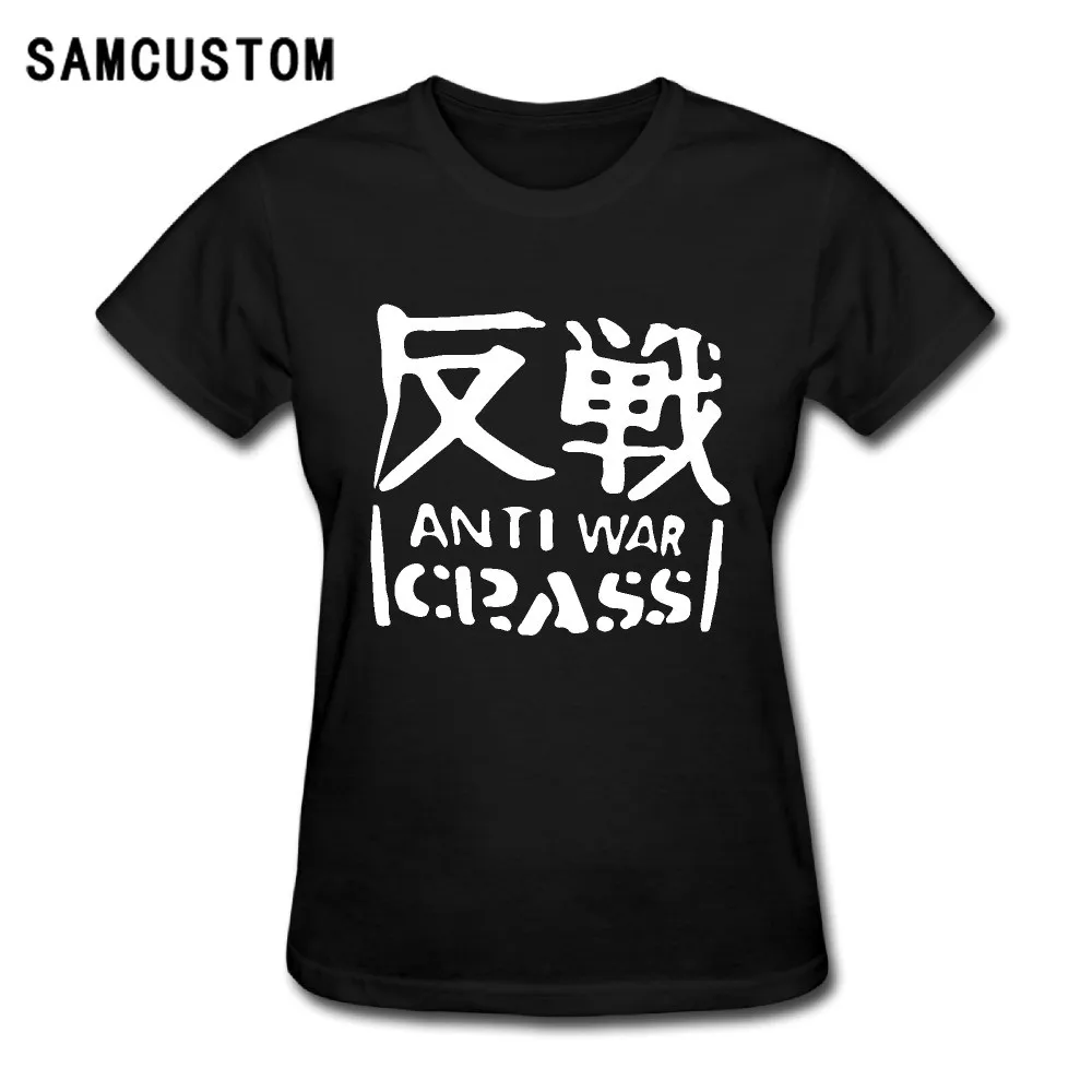 HOT Sale SAMCUSTOM Anti War Crass Japanese T-shirts for Women Harajuku Funny Product Tops Lady Casual Short