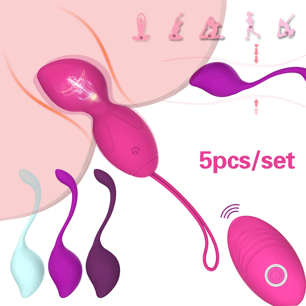 5PCS Vagina Balls Trainer Sex Toys Silicone Ben Wa Balls Vagina Tightening Exerciser Kegel Ball Vib