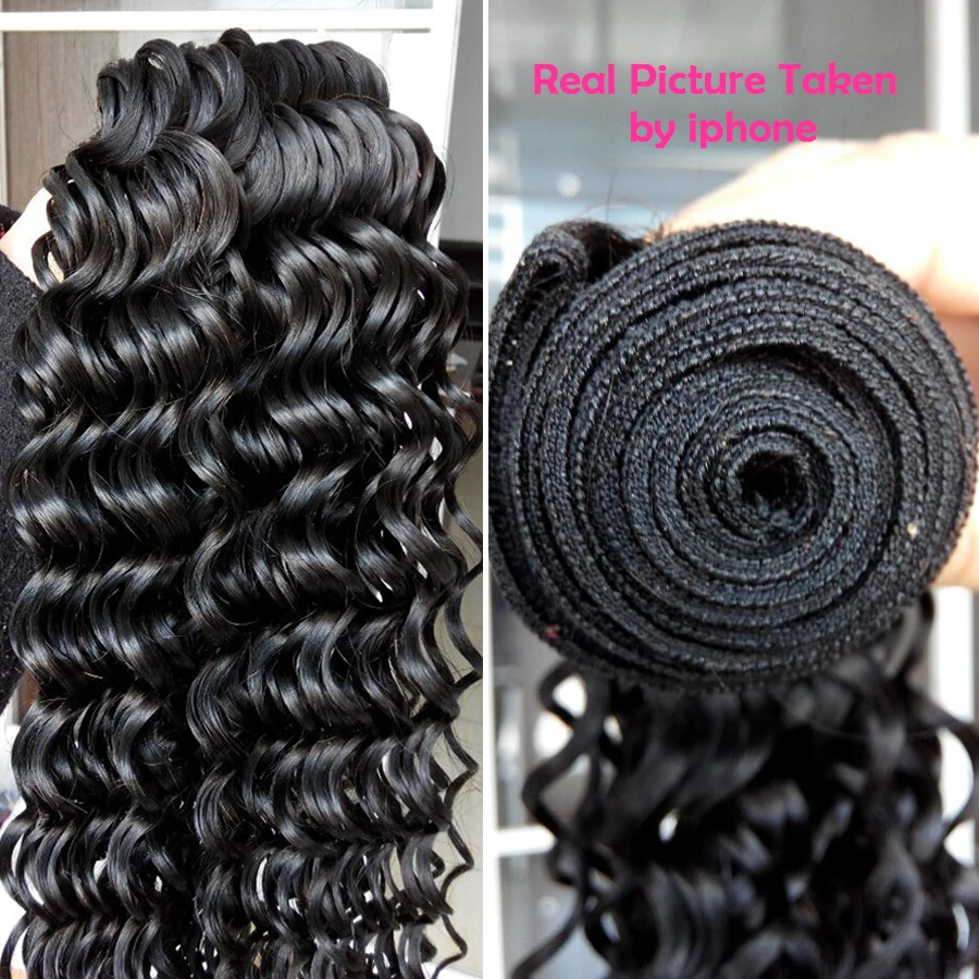 ORIGINAL Brazilian Deep Wave Bundles With Closure Remy Weaves Human Hair With Closures 3 Bundles With Lace C